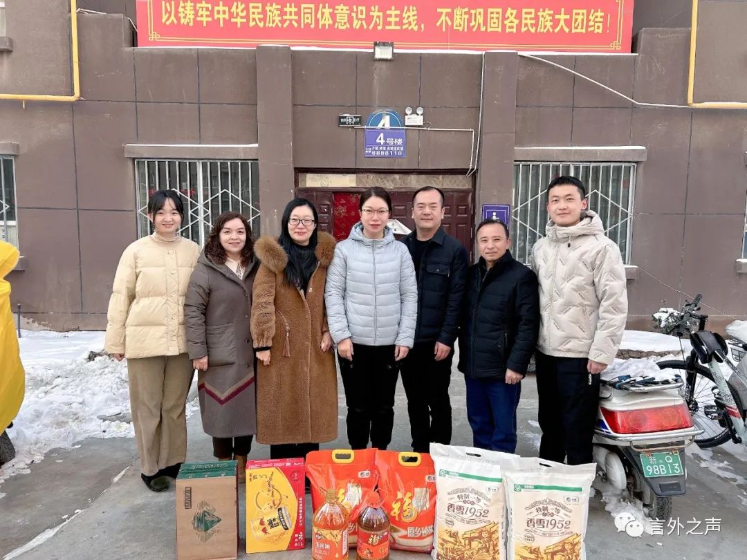 1月20日,在新春佳节来临之际,我院党委书记陈国静、副书记阿地力江·穆汗穆德依明、副院长林冬梅、公共外语教学部教师陈盈盈、马依努尔·阿布都吾甫、翻译系教师路明彰一行6人赴多来特巴格乡17村“访惠聚”工作队,走访慰问我院党委委员、团委书记杨帆,送上慰问金和慰问品,致以诚挚的问候和节日的祝福。