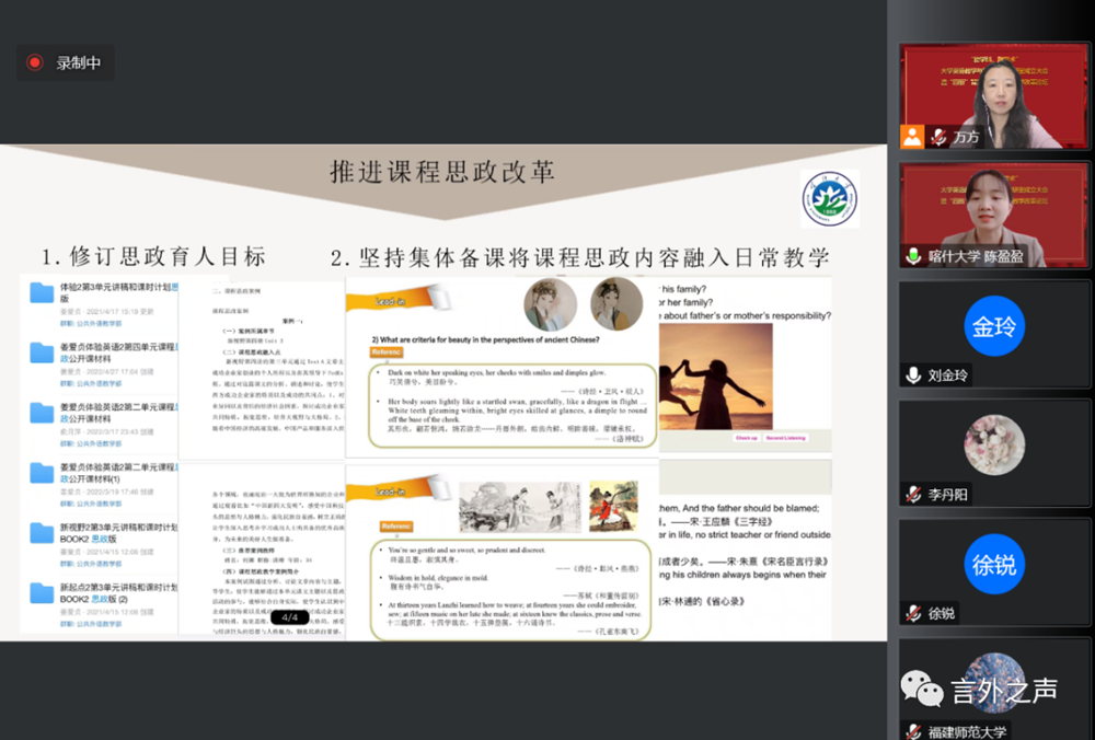 本次论坛吸引了全国众多高校教师的关注,我院公共外语教学部全体教师全程上线参与论坛及院校交流活动,共同学习大学英语教学改革的新路径、新方案和新模式,努力与全国各大高校一道,共同推进大学英语教学的新一轮高层次改革。
