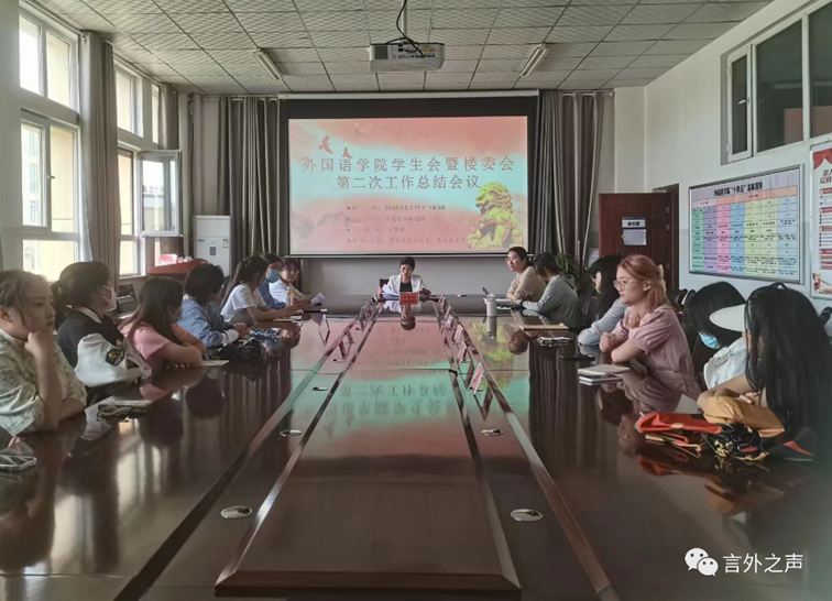 为加强我院团委学生会各部门的联系,充分协调好各个部门之间的职能,更好地服务学生。近日,我院团委在学院C220会议室顺利召开外国语学院学生会暨楼委会第二次工作总结会议。我院辅导员王静静、靳思佳、团委学生会及楼委会全体成员参与此次会议。本次会议由王静静主持。