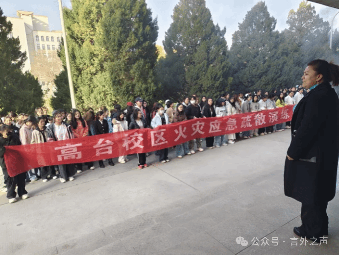 为深入贯彻落实习近平总书记关于应急管理的重要论述和消防工作重要指示批示精神,落实《喀什大学关于开展“11·9消防宣传月”活动 的通知》要求,进一步提升全院师生消防安全素养、防灾减灾救灾能力及自防自救技能,切实筑牢校园安全屏障,2025 年 11 月 12 日 17 时,外国语学院在高台校区 12 号楼成功组织开展消防安全专项演练。学院全体师生以高度负责的态度全程参与实战模拟,在沉浸式体验中夯实安全防护基础,凝聚 “全民消防、生命至上” 的思想共识。