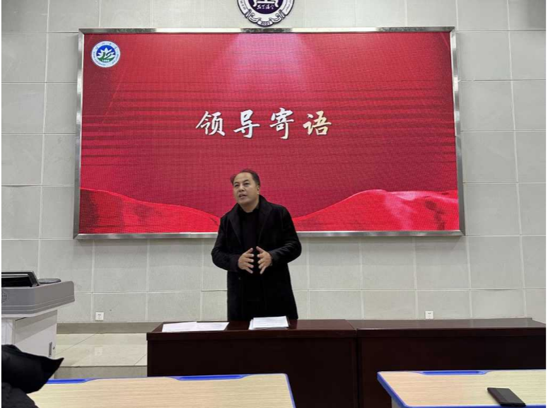 宣誓结束后,学院党委副书记、纪委书记阿力木江·买买提明讲话。他充分肯定了同学们长期以来的辛勤付出与不懈坚持,勉励大家坚定必胜信心。他强调,考研既是学识的检阅,更是人格的试炼,要求全体同学必须将诚信内化于心、外化于行,严格遵守国家考试法律法规,以真实水平考出风采。同时,他叮嘱同学们在冲刺阶段要科学规划、劳逸结合、调整心态,并代表学院表达了全力支持与殷切关怀。阿力木江副书记深情寄语全体考研学子,祝愿大家笔锋所至,梦想花开,在考场上绽放光芒,捷报频传,为学院增添新的荣耀。