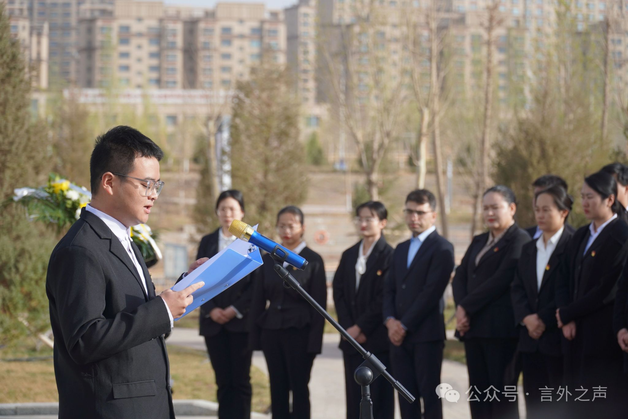 4月4日,我院党委在新泉校区拉齐尼广场开展了“缅怀时代英雄,赓续红色血脉”主题党日活动,此次活动由学院专职组织员蔡雪凝同志主持,学院全体师生党员、部分学生代表参加。