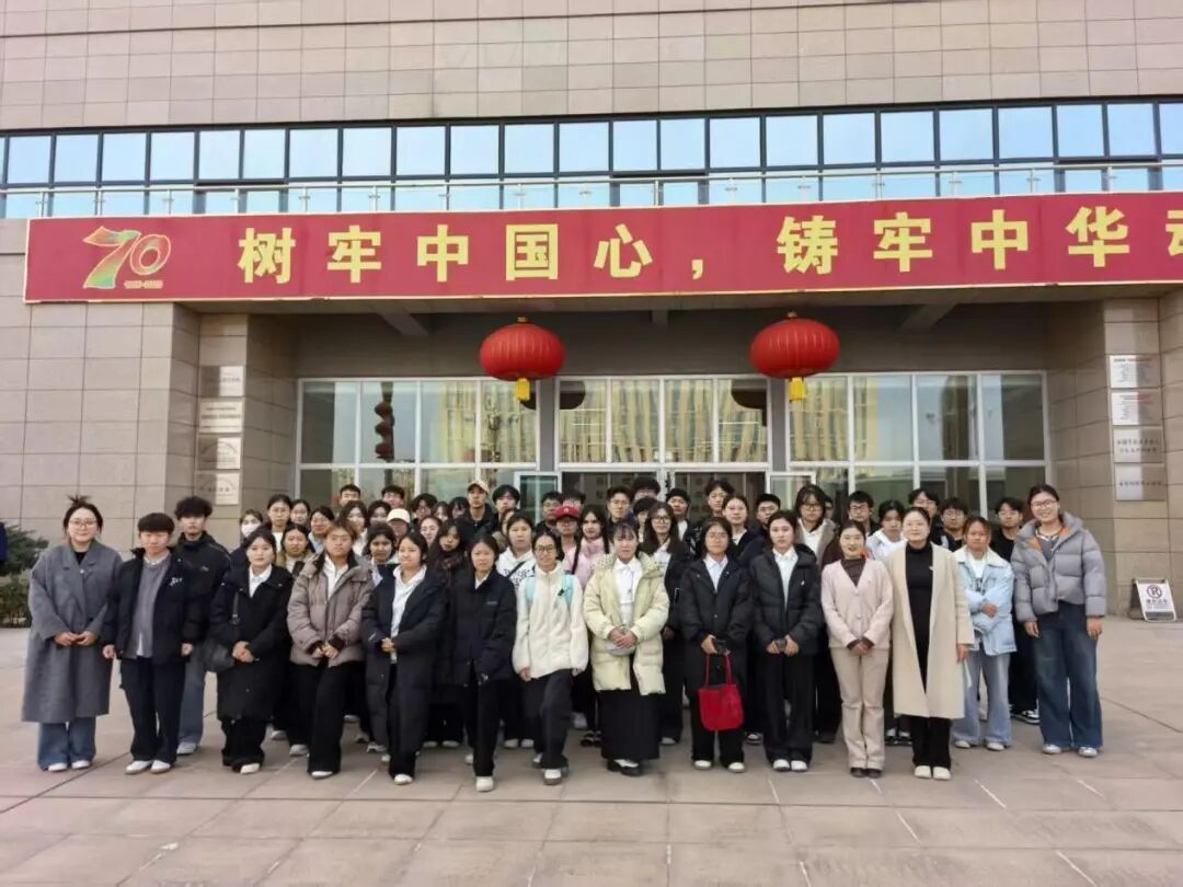 党员教师与2025级本科新生在思想政治教育基地门前合影留念