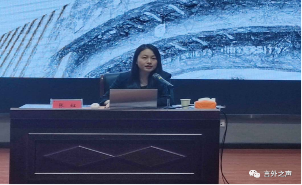 讲座上,张虹教授介绍了采用多案例研究方法探讨云共同体西部高校外语教师身份认同的转变类型的研究背景、研究方法,从教师和云共同体视角深入分析了身份认同转变的原因。