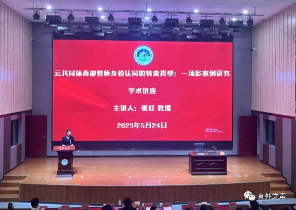 为深入学习贯彻习近平新时代中国特色社会主义思想,推动我院主题教育走深走实,促进我院教育教学高质量发展。近日,我院特邀北京外国语大学教授,博士生导师,教育部人文社会科学重点研究基地中国外语与教育研究中心专职研究员,国家语言能力发展研究中心专职研究员,国际期刊The Journal of Asia TEFL编委会成员张虹开展了以《云共同体西部教师身份认同的转变类型:一项多案例研究》为主题的学术讲座。本次讲座由学院党委书记陈国静主持,我院全体教师及学生代表参加。