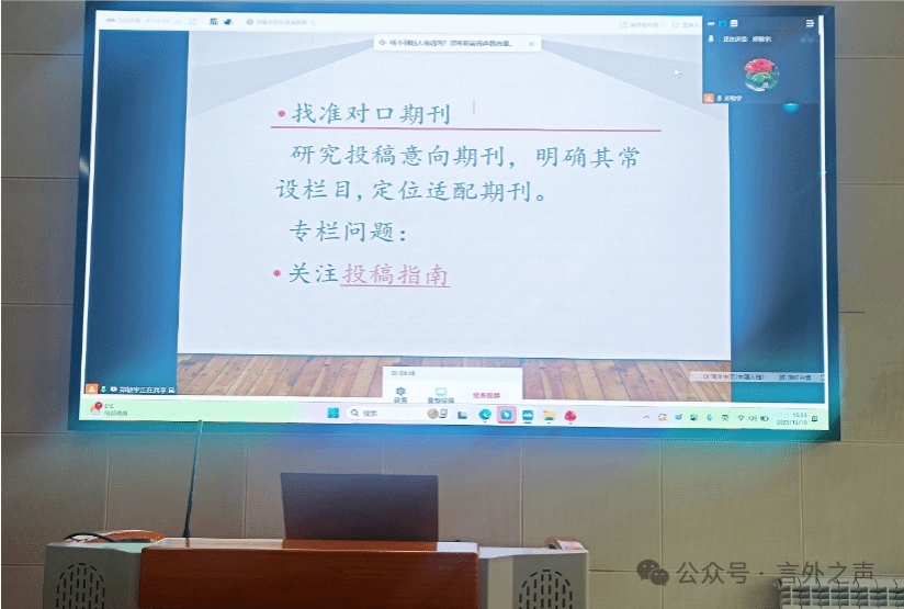 12月10日,喀什大学外国语学院“学术月”系列活动持续开展,特邀上海外国语大学编审、博士生导师郑敏宇教授,通过线上线下相结合方式举办“学术论文写作与发表”专题讲座。本次讲座由学院党委委员、副院长舒进艳主持,学院党委副书记、院长范姣兰,党委委员、副院长倪蓓锋,副院长林冬梅,学院部分教师,研究生和本科生参加。