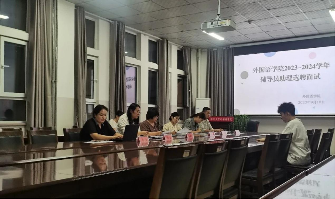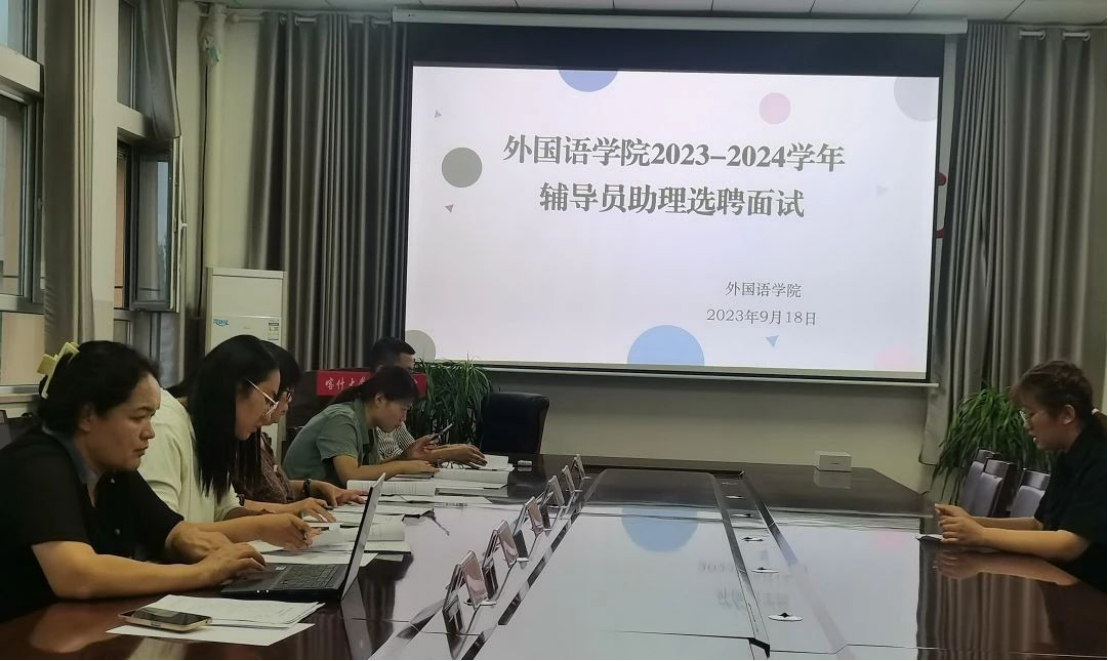 为了更好地发挥辅导员助理的关键作用,提升学生的管理能力和服务水平,近日,外国语学院分别举行了辅导员助理选拔笔试、面试。评审教师由学院党委委员、副院长范姣兰、学院纪检委员路明彰、学工办副主任努日比叶·买海提、辅导员王静静、谢宁宁、靳思佳组成,8名学生参加本次竞聘。