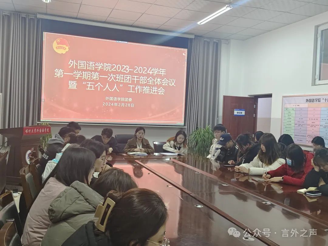会议伊始,王静静对《自治区团委2024年工作要点》、《喀什大学团委2024年工作要点》、《2024年春季学期“五个人人”活动实施方案》进行了详细解读,并带领全体班团骨干从总体思路、5大模块和19项内容进行学习。
