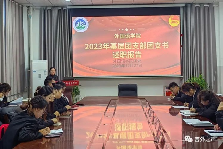 为深入学习贯彻习近平新时代中国特色社会主义思想,加强团的基层组织建设,推动学院共青团工作高质量发展,充分调动基层团干部的积极性、主动性、创造性,近日,我院在学院C220会议室召开2023年基层团支部书记述职大会。学院辅导员王静静、胡家俊、主席团成员程雨萱、李梦心、程洁诺作为评委,23名团支书参加了本次会议,大会由王静静主持。