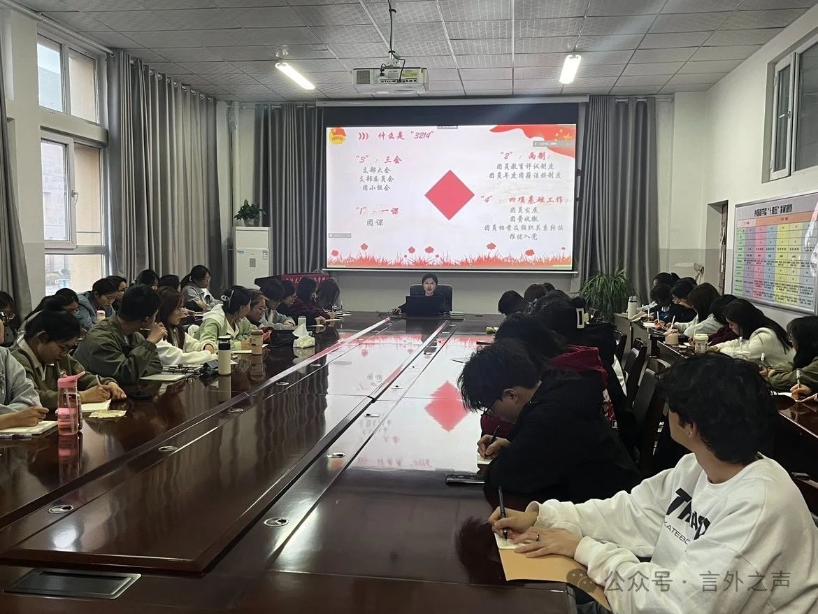 为进一步充实我院团员队伍、规范团员发展工作、强化团员先进性建设,近日,外国语学院在学院C220会议室举行2024年入团积极分子团课培训开班仪式。本次会议由辅导员王静静老师主持,辅导员胡家俊老师和144名学生参加。