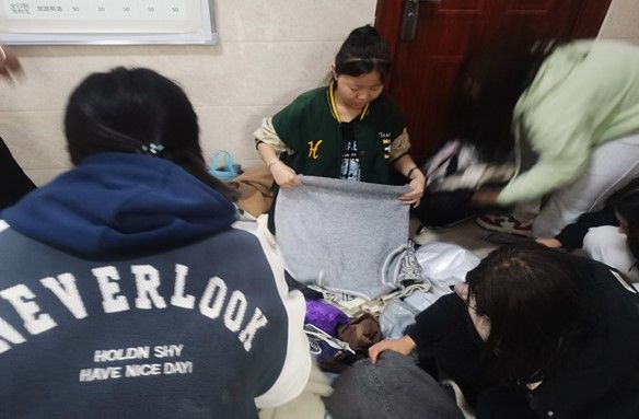 我院学生会成员在整理归纳捐赠衣物