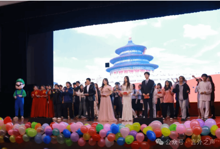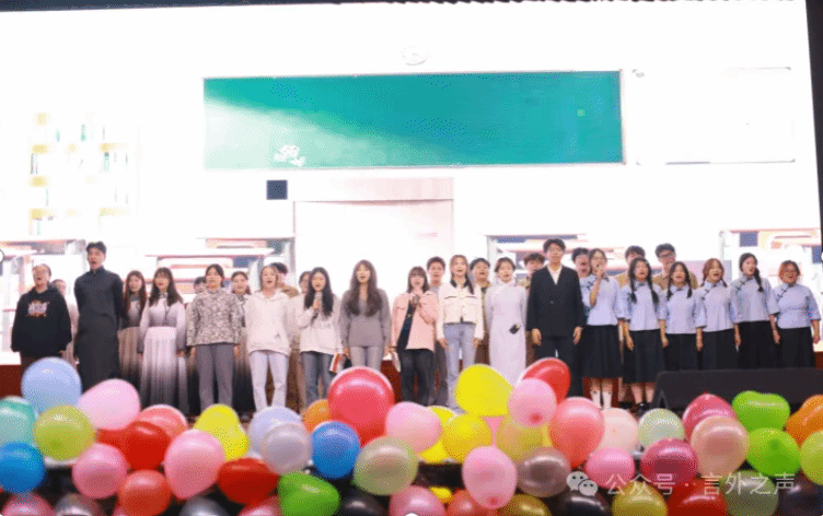 在晚会的最后,全体演员上台谢幕,以一首《歌唱祖国》结尾,体现了全体师生对国家的热爱与赞美,歌唱出了外国语学院全体师生对祖国的深深爱国心,现场响起了经久不息的掌声。