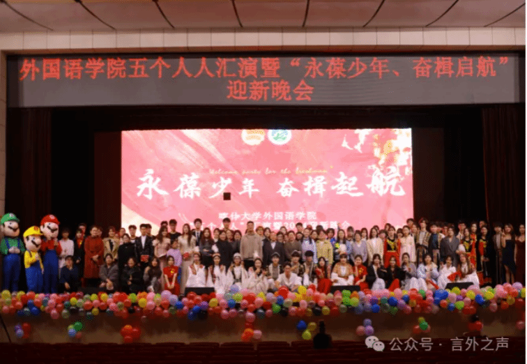 近日,外国语学院“五个人人”汇演暨“永葆少年,奋楫起航”2024年迎新晚会在高台校区科学会堂盛大开幕,为新同学送上了一场精彩纷呈的视听盛宴。外国语学院党委副书记、纪委书记阿地力江·穆罕默德依明带领全体教师及2024级新生出席晚会。