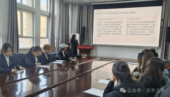 为进一步强化基层团支部建设,全面检验各团支部年度工作成效,提升团支书履职能力,2025年12月17日,外国语学院团委在C220会议室召开2025年团支部书记述职评议会议。会议由学生团委副书记段欣宇同学主持,院团委副书记周天生、学生团委副书记何佳乐同学及15名团支部书记参加会议。