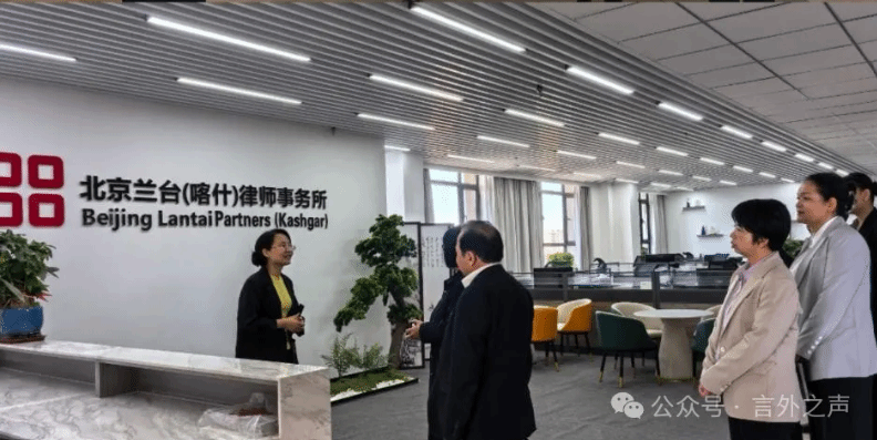 签约仪式后,范姣兰一行参观了北京市兰台(喀什)律师事务所和新疆法智谷项目管理咨询有限公司。参观中,范姣兰与双方负责人深入交流,双方就校企合作实施、人才培养模式、实习实训基地建设及未来合作方向等议题进行了探讨。范姣兰高度评价事务所的办公环境、业务流程和团队建设,希望深化校企协同育人机制,为学生提供优质实践平台,为司法领域输送专业人才。事务所负责人也积极回应,期待共同探索创新人才培养模式,提升翻译专业学生的实践能力。