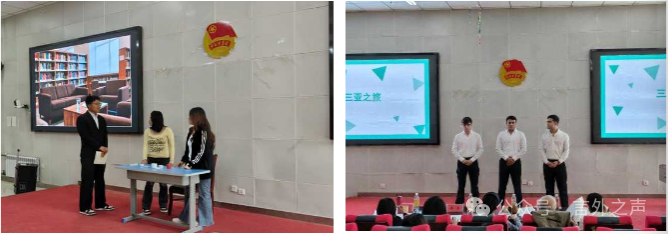 在国际学生组中,则评选出一等奖1组、二等奖2组、三等奖2组。由来自国际教育学院的米卓、乐天、王维组成的队伍摘得桂冠,同样获得了晋级省赛的资格。他们分享了“三亚实习之旅:我的汉语桥与文化探索之路”,通过他们在三亚的实习经历,讲述了学习汉语、深入了解中国地域文化的独特感悟与心路历程,展现了文化交融的魅力。