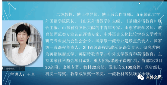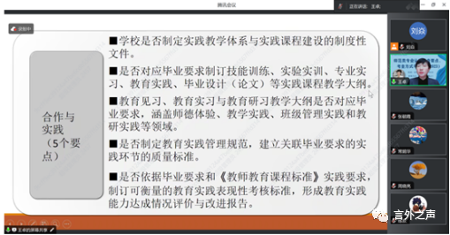 近日,为做好师范专业认证筹备工作,我院特邀山东师范大学外国语学院院长王卓教授作题为《师范类专业认证考查要求、考查方式与解读(2023)》的线上专题讲座。讲座由学院援疆教师刘焱副院长主持,学院全体教师在线聆听。